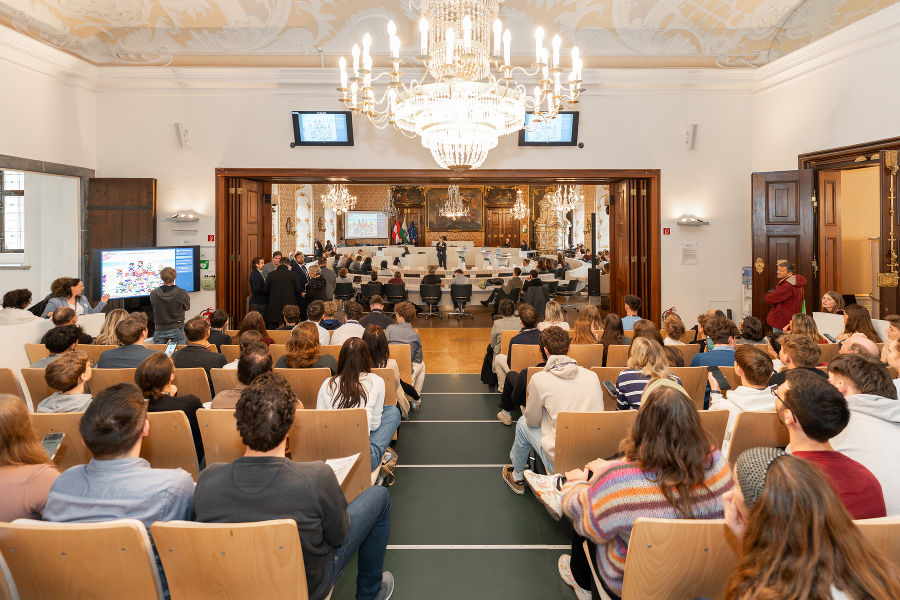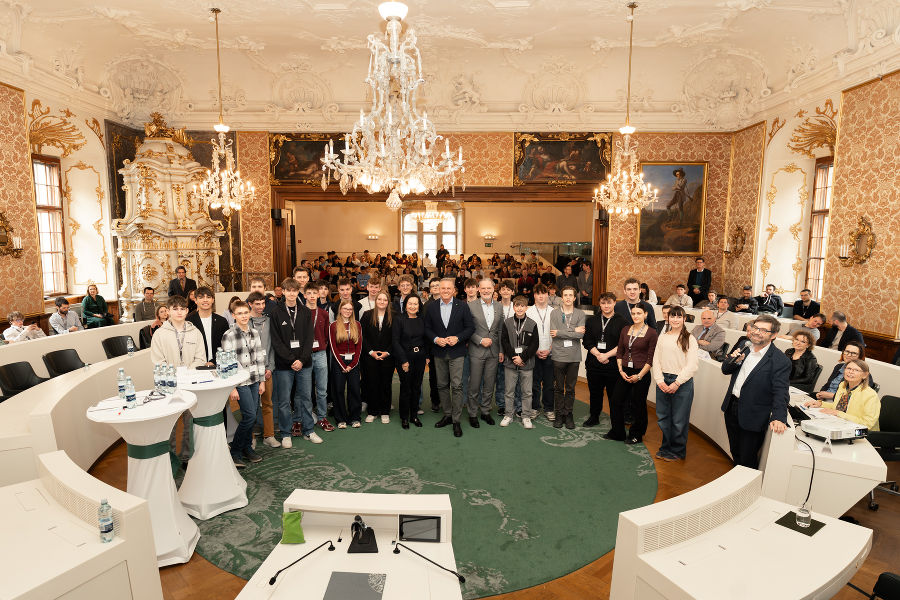 Über 100 Schülerinnen und Schüler - bestehend aus Finalistinnen und Finalisten sowie Zusehenden - füllten die Räumlichkeiten des Landtages. Eine besondere Ehre wurde ihnen zuteil, als auch Landeshauptmann Mario Kunasek - selbst einst Teilnehmer eines Schülerquiz - die Anwesenden persönlich begrüßte und allen zur Qualifikation für das Finale gratulierte.